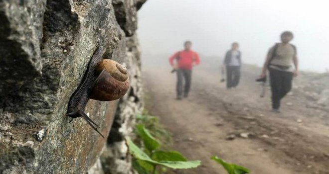 Yoğun sis altında gerçekleşen yürüyüşte zaman zaman açılan siste manzaranın tadını çıkaran sporcular, ilginç coğrafyada çok sayıda farklı çiçek ve bitkiyi fotoğraflama imkanı da buldu.