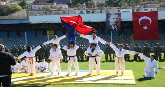 Halk oyunları, bandonun sergilediği gösterilerin ardından şiirler okunarak, tören geçiti ile etkinlik sona erdi. Tören alanında alçak uçuş yapan helikopterler ise nefesleri kesti.