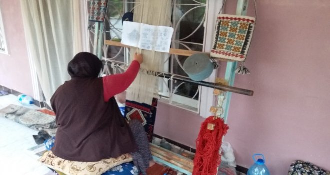 Günyüzünün Meşhur Zili Kilim Motiflerini Çantalara Dokuyor