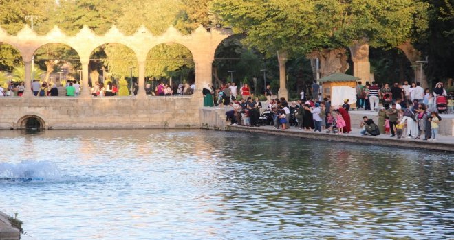 Şanlıurfada hafta sonu vatandaşlar, hem serinlemek hem de zaman geçirmek için Balıklıgöle akın ediyor. İl dışından gelenler de Balıklıgöle büyük ilgi gösteriyor.