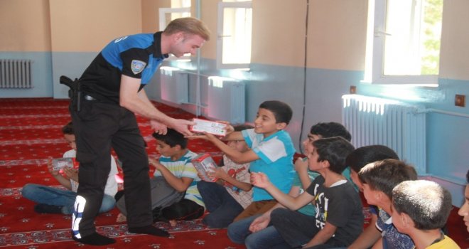 Camileri ziyaret eden polis ekipleri, Kuran kurslarına katılan çocuklarla bir araya geldiler. Burada çocuklarla yakından ilgilenen polis memurları, onlarla olan diyaloglarını geliştirmek için kendilerine oyuncak araba ve bebek hediye ettiler.