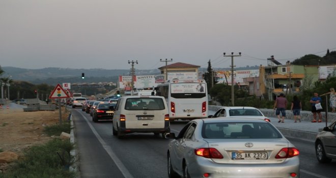 Bayram tatili nedeniyle tek bir boş yer bile kalmayan Kuşadasında bayram yoğunluğu da artarak devam ediyor. Bayramın dördüncü günü olmasına rağmen Kuşadası girişlerinde kilometrelerce araç kuyruğu oluştu.