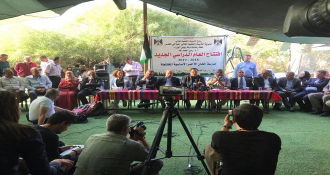 İsrailin tehdidi altında bulunun Doğu Kudüsteki Han El-Ahmar Okulu, İsrail tehdidi yüzünden 2018-2019 akademik yılına erken başladı. Filistin Eğitim Bakanlığı, Han El-Ahmar bölgesinde bulunan okulun yıkılmasını önlemek ve bölge sakinlerine destek vermek amacıyla eğitimini istisnai olarak erken başlattı. Okulun yeni eğitim dönemi açılışına Filistin Milli Eğitim Bakanı Sabri Saydam, Batı Şeriadaki Yahudi Yerleşim Dosyası sorumlusu Gassan Dagles, öğrenciler, öğretmenler, bazı bakanlar ve çok sayıda Filistinli yetkili katıldı.
