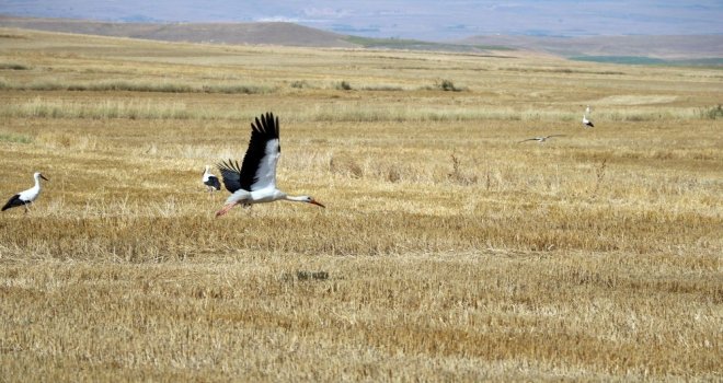 Hasat Sonrası Leyleklerin Karın Doyurma Mesaisi Başladı