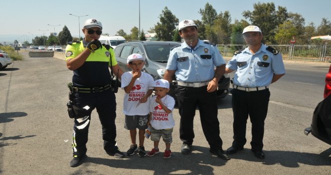Aydında trafik polislerinin uygulama noktalarında bayram süresince oluşabilecek kazaları en aza indirmek amacıyla durdurulan araçlardaki çocuklara şapka, tişört, düdük ve broşür dağıtıldı. Çocuklar ve aileleri uygulamaya konulan proje hakkında bilgilendirildi.