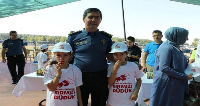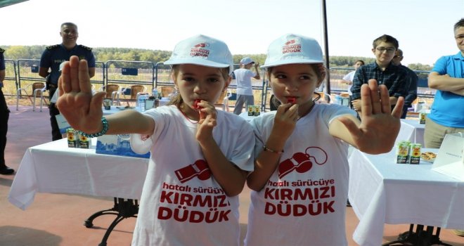 ‘Hatalı sürücüye kırmızı düdük lansmanının ardından çocuklara, kırmızı düdükleri, şapka ve tişörtleri hediye edildi.