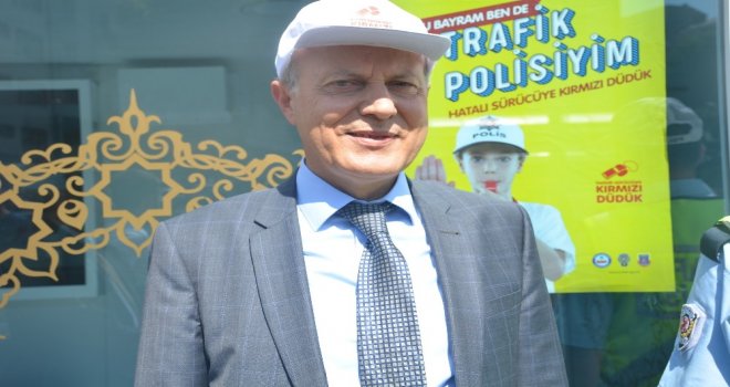 Kurban Bayramında oluşabilecek trafik kazalarının önlenmesi amacıyla İçişleri Bakanlığının talimatıyla 81 ilde Bu bayram ben de trafik polisiyim, hatalı sürücüye kırmızı düdük projesi başlatıldı. Proje kapsamında Bilecik İl Emniyet Müdürlüğü Trafik Tescil Denetleme Şube Müdürlüğü ekipleri, Eski Belediye Kavşağında denetim yaptı. Uygulama kapsamında içinde çocuklu ailelerin bulunduğu araçlar durduruldu. Bilecik İl Emniyet Müdürü Ertuğrul Namal tarafından araçlarda bulunan çocuklara proje hakkında bilgi verilip, kırmızı düdük, tişört ve şapka hediye edildi. Çocuklardan, içinde bulundukları otomobilin sürücüsünün kurallara uymaması halinde kırmızı düdüğü çalması isteyen İl Emniyet Müdürü Namal, Uygulamamıza sizin de gördüğünüz şekilde arkadaşlarımızla başladık. Malumunuz bayram tatilimiz 9 gün ve bayram tatillerinde maalesef can ve mal kayıplarında bir artış söz konusu oluyor trafiğin artmasından dolayı. Emniyet Genel Müdürlüğü ve Bilecik Emniyet Müdürlüğü, Bilecik Valiliği olaraktan bizde bu bayramdaki sloganımız çocukların ‘Ben de trafik polisiyim, hatalı sürücüye kırmızı düdük şeklinde. Çocuklarımıza kırmızı düdük vereceğiz. Sizin de gördüğünüz gibi dağıtımına başladık. Çocuklarımız doğruyu söylerler ve bu bakımdan çocuklarımız bulundukları araçlarda seyir halindeyken sürücülere emniyet kemeri takmaması konusunda, cep telefonu kullanarak dikkat dağıtılması söz konusuysa veya aşırı hız söz konusu olduğunda bu konularda verdiğimiz kırmızı düdüğü çalmak suretiyle annelerini, babalarını, sürücüleri uyarmalarını bekliyoruz” dedi.