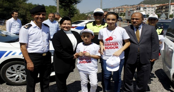 Aydın girişi uygulama noktasında gerçekleşen uygulamaya İl Jandarma Komutanı Tuğgeneral Coşkun Sel, İl Emniyet Müdürü Hakan Çektinkaya da katıldı. Muğlaya tatil için gelen çocuklu araçlar uygulama noktasında trafik ekiplerince durduruldu. Aileler Vali Esengül Civelek tarafından uygulama hakkında bilgi verilmesinin ardından aileleri ile seyahat eden çocuklara kırmızı düdük, tişört, şapka hediye edildi.