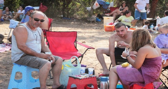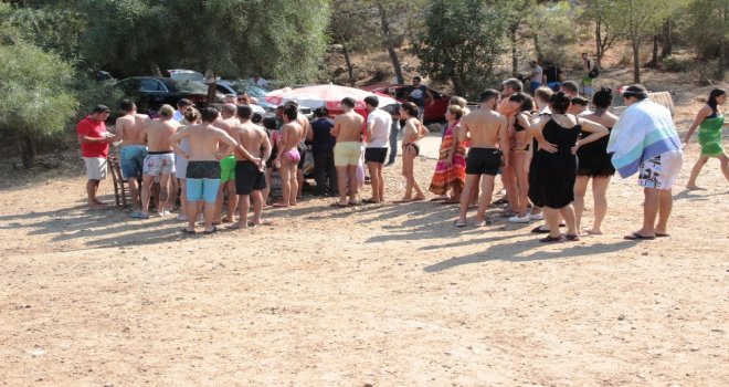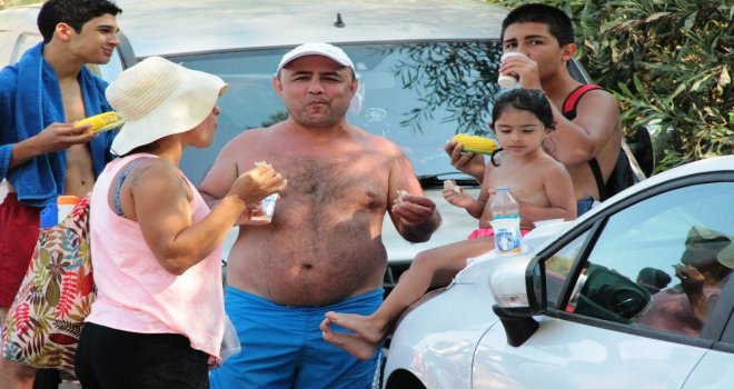Halk plajında ücretsiz lahmacun dağıtılacağını gören tatilciler deniz keyfini bir kenara bırakıp lahmacun-ayran kuyruğuna girdi. Büyük yoğunluk oluşan halk plajında bin adet lahmacun 5 dakikada tükendi. Çocuklara ise süt mısırı dağıtan hayırsever iş adamı halk ile sohbet edip bayramlarını kutladı. Lahmacun ve ayran alan tatilciler ise durumdan memnun kaldıklarını belirtti.