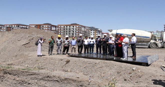 Kurban kesilmesi ve yapılan duanın ardından Erzurum Valisi Seyfettin Azizoğlu, ilk temeli atmak için butona bastı.