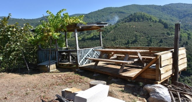 Hendek ilçesi Güney Mahallesinde yaşayan Hasan İhtiyar, bölgeye hakim olan yüksek bir noktaya küçük bir seyir terası inşa etti. Bölge ağaçların yanı sıra bitki örtüsü, temiz havası ve deresi ile misafirlerine farklı bir ortam sunuyor. Öncelikle arkadaşları ile oturup dinlenebilmek için inşa ettiği yerin Aksu Deresinden 180 metre yükseklikte olduğunu belirten İhtiyar, vatandaşların da aileleriyle birlikte gelerek mangal yapabileceklerini de söyledi.