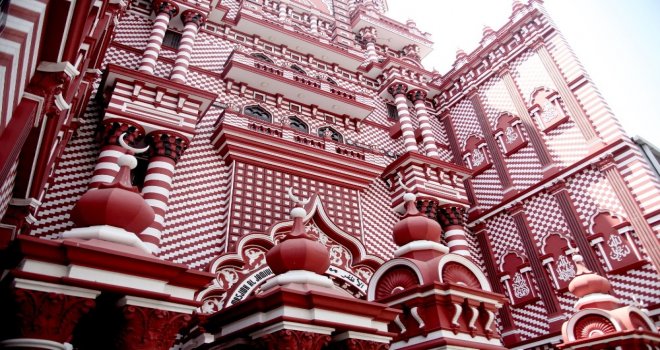 Sri Lankanın başkenti Colomboda Müslümanların yoğunlukla yaşadığı Pettah Caddesinde bulunan ‘Kırmızı Mescit Camisi her gün binlerce Müslüman tarafından ziyaret ediliyor. 5 katlı mescitte 12 bin Müslüman aynı anda ibadet edebiliyor.