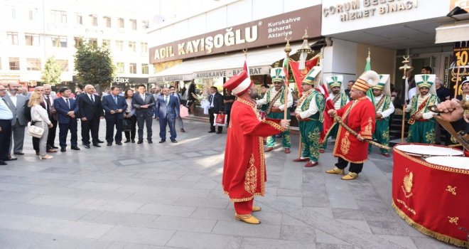 Belediye Başkanı Zeki Gül tarafından mehteran ekibiyle karşılanan mehter gösterisini büyük bir ilgiyle izleyen konuk heyet, daha sonra konser sonunda mehter başının elindeki kılıcı alarak hatıra fotoğrafı çektirdi.