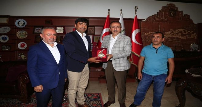HAK-İŞ Konfederasyonuna bağlı Hizmet-İş Sendikası Kayseri Şube Başkanı Serhat Çelik, Nevşehir Belediye Başkanı Atilla Seçen i ziyaret ederek Belediye işçilerine Kurban Bayramı öncesinde sağladığı ikramiye için Seçene teşekkür etti.