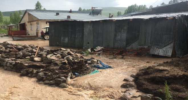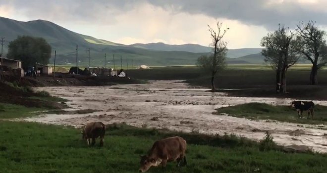 Erzurumun Horasan ilçesine bağlı mahallelerde sel sonrası dereler taştı, yerleşim alanları su altında kaldı.
