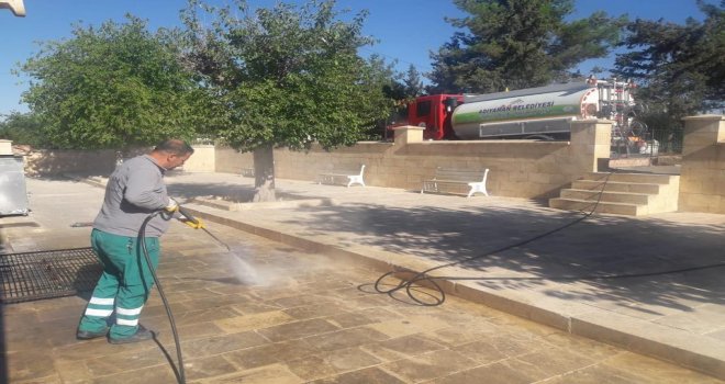 Adıyaman Belediyesi Temizlik İşleri Müdürlüğü, vatandaşlar tarafından yoğun bir şekilde ziyaret edilen cami, türbe ve taziye evlerinde temizlik çalışması yaptı.