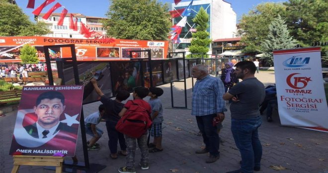 Malatya Büyükşehir Belediyesi tarafından Kültür A.Ş. organizasyonu ile eski belediye meydanında Cuma günü açılan 15 Temmuz destanı fotoğraf sergisinde İhlas Haber Ajansı muhabirleri tarafından çekilen fotoğraflar sergileniyor.