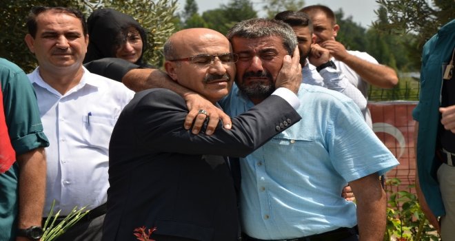 Acılı baba Vali Demirtaşın her konuda kendilerine yardımcı olduğunu, bir baba gibi olduğunu söyleyerek, Vali Demirtaşa sarılıp öptü. Vali Demirtaş da baba Ali Oruçu öperek teskin etti. Daha sonra baba Ali Oruç ve Vali Demirtaş, ikiz şehitlerin mezarlarına karanfil bıraktı.