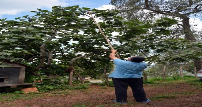 Çok kırılgan olan incir ağaçlarından düşerek yaralanmak istemeyen vatandaşlar incirleri ağaca tırmanmadan sırıkların uç kısmına yerleştirdikleri plastik kutulara topluyor.