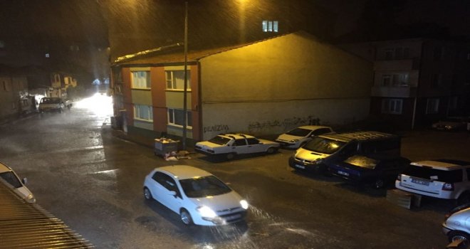 İnegölde akşam saatlerinde başlayan yağmur şiddetini artırarak sağanak yağışa döndü. Çakan şimşekler geceyi gündüze çevirdi. O anlar saniye saniye görüntülendi.