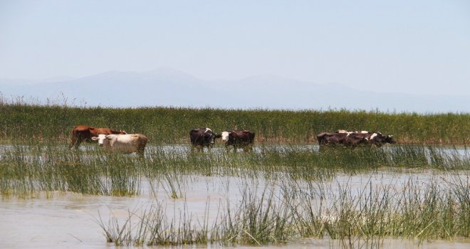 Beyşehirde gün boyu arazi ve meralarda büyükbaş hayvan otlatarak mesai yapan çobanlar, sürülerini Temmuz ayı ile beraber artan hava sıcaklıklarıyla birlikte göl kıyısındaki tatlı sularda serinletmeye başladı. Beyşehir Gölü sahiline getirilen sürüler, girdikleri Beyşehir Gölünün tatlı sularında hem serinliyor, hem de susuzluğunu gidererek dinleniyor. Sazlıklarla kaplı kıyılarda göle giren inek sürülerinin tatlı sulardan uzun süre çıkmak istemedikleri dikkat çekiyor. Büyükbaş hayvan sürülerinin sıcaklıkların artmasıyla birlikte sabah ve akşam saatlerinde olmak üzere günde iki kez göl sularına girdikleri öğrenildi.