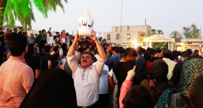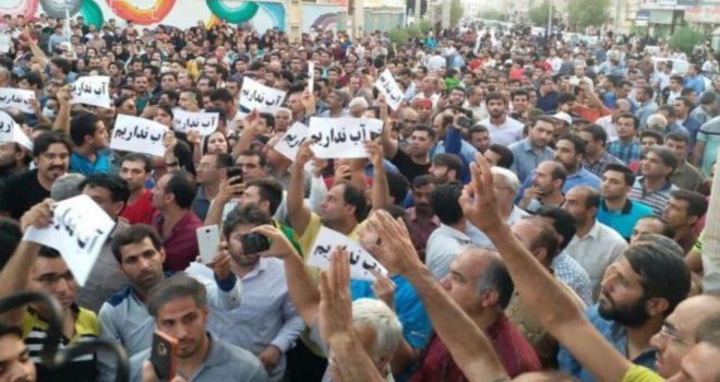 İranın Buşehr ve Borazcan şehirlerinde haftalardır yaşanan su kesintileri nedeniyle kriz yaşanıyor. Meydanlara akın eden halk ellerinde su şişeleri ve bidonlarla gecenin geç saatlerine kadar sloganlar attı. Havaların ısınmasıyla birlikte halkı zor durumda bırakan susuzluk aileleri sokaklara döktü. Protestocular ülkenin dış siyasetini eleştirerek, “Suriyeyi bırak, bizim halimize bak” gibi sloganlar attılar. Ülke yönetiminden şikayetçi halk “Kahrolsun diktatör” gibi sert sloganlar da attı.