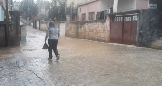 Şiddetli yağış nedeniyle bodrum katta bulunan evi su bastı. Eşyaları zarar gören Suriyeli aile, evin içerisindeki suyu ise süpürge ve kovalar yardımıyla suyu boşalttı. Vatandaşlar, yetkililerden yardım istedi.