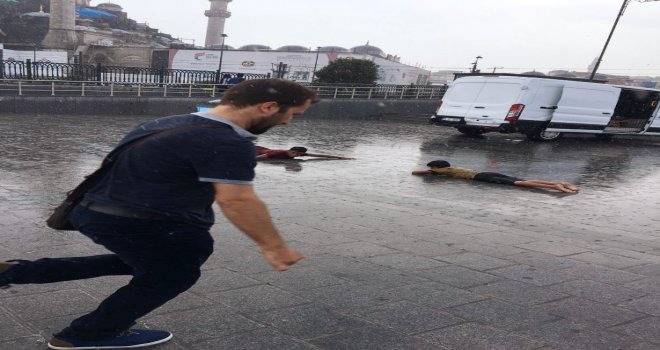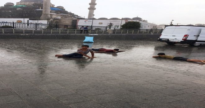 İstanbulda etkili olan yağmur çocukların neşeli anlar yaşamasına neden oldu. Eminönünde 3 çocuk yağan yağmur ile doyasıya eğlendi. Vatandaşların ıslanmamak adına kapalı alanlara sığındığı anlarda, çocuklar suyla oynayarak eğlenmeyi tercih etti. Yağmur altında ıslanarak keyifli anlar yaşayan çocukların neşesi görülmeye değerdi.
