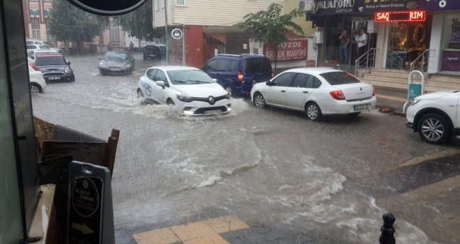 İstanbulda hayatı felç eden yağmur, Tekirdağda da akşam saatlerinde etkili oldu. Bir anda bastıran yağmur sokakları göle çevirdi.