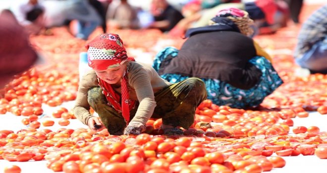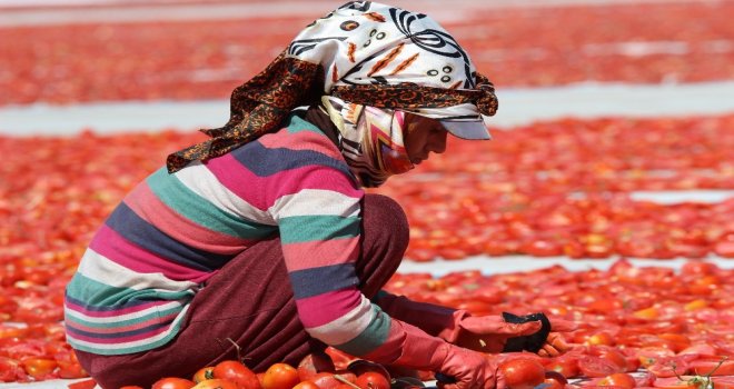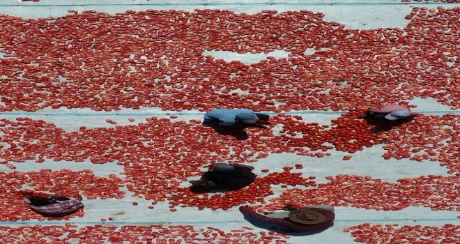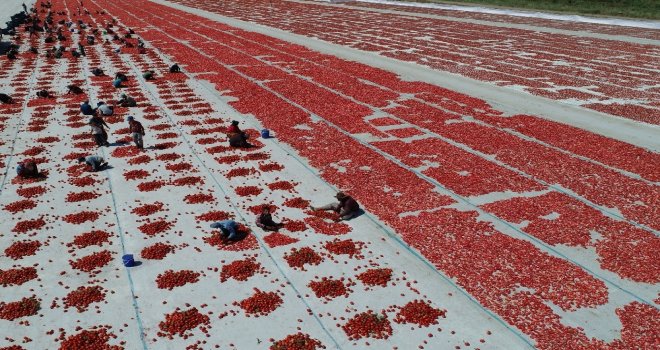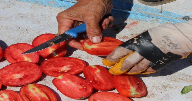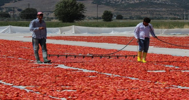 Tarlalardan toplanan domatesler, mevsimlik işçiler tarafından kesilerek ovalardaki beyaz bezlerin üzerinde kurutulmaya hazır hale getiriliyor. Tuzlandıktan sonra yaklaşık bir haftada kuruyan domatesler daha sonra fabrikalara gönderilerek işleniyor ve ihracata hazır hale geliyor. Tamamen doğal yollarla yapılan ve dünyanın birçok ülkesine kilosu 4 eurodan ihraç edilen kurutmalık domatesler, özellikle Avrupa ve Amerikada kahvaltıda tüketiliyor.