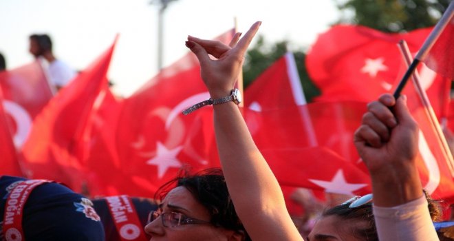 İzmirde 15 Temmuz Demokrasi ve Milli Birlik Günü dolayısıyla Konak Meydanında toplanan binlerce vatandaş ellerinde Türk bayrakları ile sabaha kadar sürecek olan demokrasi nöbetini tutmaya başladı.
