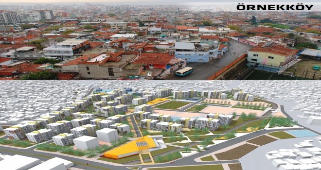 Örnekköyde 1. etabın temel atma törenini gerçekleştiren İzmir Büyükşehir Belediyesi, 150 konut ve 11 işyerinin inşa edileceği 2. etap kat karşılığı anahtar teslimi inşaat yapım işi ihalesine de 6 Eylül Perşembe günü çıkacak. Yıpranmış, sağlıksız ve kaçak yapılardan oluşan Örnekköy proje alanında mevcut durumda 705 adet yapı ve 91 adet iş yeri olmak üzere toplam 1291 bağımsız birim bulunuyor. Toplam 3520 konut ve 338 adet iş yerinin inşa edileceği proje alanında 60 m (1+1) ,70 m (2+1), 83 m (2+1), 96 m (2+1), 108 m (3+1) ve 123 m (3+1) olmak üzere toplam altı ayrı konut tipi tasarlandı. Proje bölgesinde 30.000 m yeşil alan ve rekreasyon alanı, 10.000 m semt spor alanı, içinde kapalı pazar yeri ve sosyal merkez bulunan 3.500 m Belediye Hizmet Alanı ile birlikte yaklaşık 4.000 m büyüklüğünde üç meydan bulunuyor. Ayrıca bölgede, otopark ihtiyacı için açık ve kapalı otoparklar ile daha önceki imar planında ayrı yerlerde bulunan bir adet ilkokul ve 1 adet ortaokulun tek bir yerde toplandığı 15 dönümlük bir eğitim alanı planlandı. Toplam inşaat alanı 19.042 m olan ve yapım süresi 22 ay olarak belirlenen 2. etap kat ihalesinde hak sahiplerinin alacağı dairelerin belirlendiği kura çekim töreni 11 Haziran tarihinde noter huzurunda gerçekleştirilmişti.