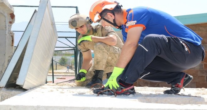Van İl Jandarma Komutanlığı ve Van İl Afet ve Acil Durum (AFAD) Müdürlüğü ekipleri tarafından Gölcük depreminin yıldönümünde arama kurtarma tatbikatı yapıldı.