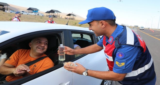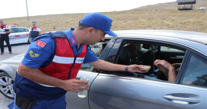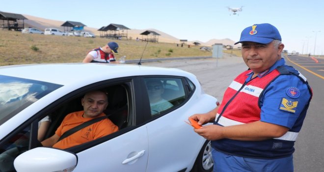 Bayram öncesinde trafik denetimlerini artıran jandarma trafik ekipleri denetimlerinde drone kullanarak hız ve şerit ihlali ile emniyet kemeri denetimi yaptı. Jandarma trafik ekipleri ayrıca, sürücülere kolonya ve şeker ikram ederek, sürücülerle bayramlaştı.