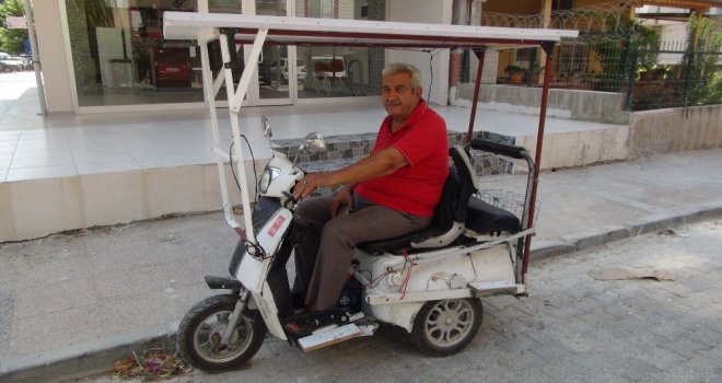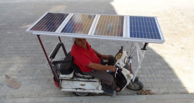 Mersinin Silifke ilçesinde emekli memur Sabri Dölek, güneş enerjisiyle çalışan üç tekerlekli bisiklet icat etti.