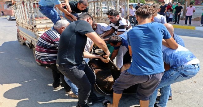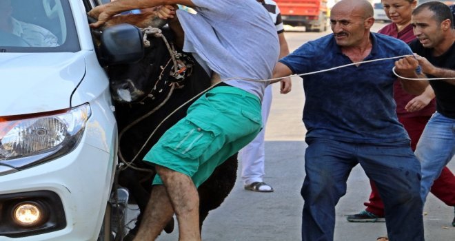 Antalyada bayramın ilk günü özellikle büyükbaş kurbanlıklar kesim yerine götürülürken sahiplerine zor anlar yaşattı. Sabah 07.00de Kepez ilçesi Teomanpaşa Mahallesinde Selahattin Akdağa ait bir boğa, kesime götürülürken sahiplerinin elinden kaçtı. Daha sonra bir süre sahiplerini ve kendilerini yakalamak isteyenleri peşinden koşturan boğa, ara sokaklarda kıstırıldı ancak yanına kimseyi yaklaştırmadı. Bunun üzerine Akdağ ailesi, polis ve belediye ekiplerinden yardım talep etti. İhbarın ardından adrese giden ekipler, yolu trafiğe kapattı. Belediye görevlileri ise boğaya 5 kez uyuşturucu iğne sıkıp sakinleştirmeye çalıştı. İğnenin ardından sakinleştiği sanılan boğanın yanına kasaplık yaptığı öğrenilen bir kadın geldi. Kadına zor anlar yaşatan boğayı, belediye ekipleri de kaçmaması için araç lastiğini, boynundaki ipin üzerine denk getirerek zapt etmeye çalıştı. Bu sırada daha çok sinirlenen boğa, kendisini tutmaya çalışan boğa sahiplerinden Tekin Akdağa saldırarak zarar verdi.