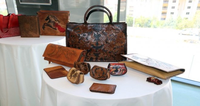 Yozgat Halk Eğitim Merkezi ve Akşam Sanat Okulu kösele ve deri çanta işlemeciliği kursunda eğitim gören kadın kursiyerler hazırladıkları ürünleri sergilendi.