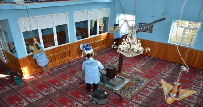 Kahramankazan Belediyesi temizlik ekipleri, Kurban Bayramı öncesinde ilçe genelindeki 72 cami ve mescidi temizleyerek bayram namazına hazır hale getirdi.