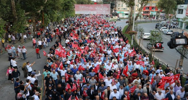 ‘Şehitler ölmez vatan bölünmez gibi sloganlar atan vatandaşlar Demokrasi Meydanında gerçekleşen program da şehitlerimiz için yapılan duaya hep birlikte ‘Amin dedi.