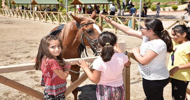 Kahramanmaraşta düzenlenen etkinlikte yetim çocuklar at çiftliğinde gönüllerince eğlendi.
