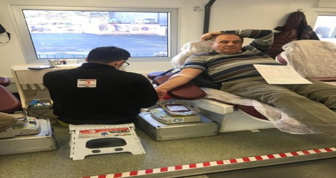 Vanlı işadamı Zahir Kandaoğlu, Kızılayın gezici kan bağış aracını ziyaret ederek kan verdi.
