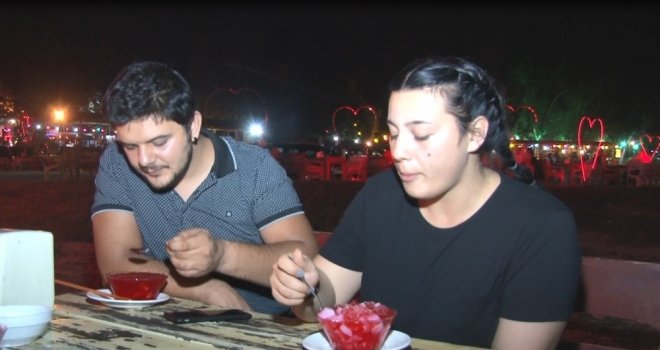 Sıcak havalardan dolayı bici bici yiyerek Kanlı Ay Tutulmasını izlediğini belirten Halaçoğlu, Adana sıcaklarına en iyi bici bicinin geldiğini söyledi.