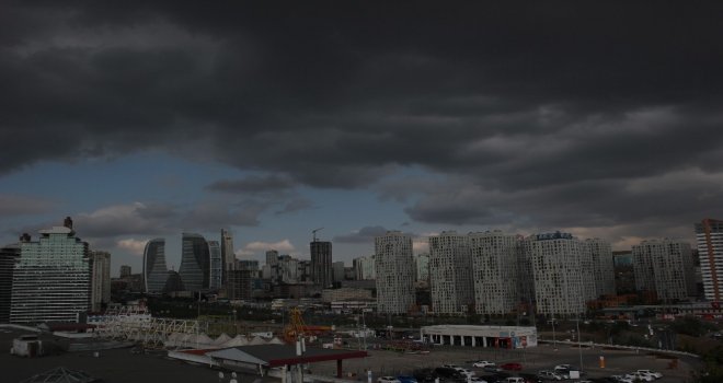 Beylikdüzü ve Esenyurt bölgesinde gökyüzündeki kara bulutlar, çevreyi bir andı sardı. Bulutlar, gündüzü geceye çevirirken kısa süreli sağanak yağışta etkili oldu.