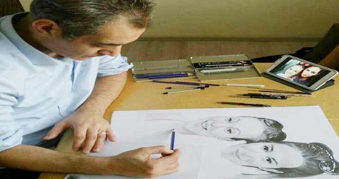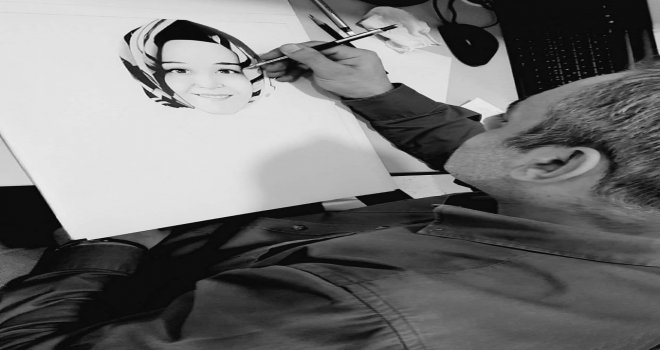 Bursanın İnegöl ilçesinde, bir ressamın yaptığı karakalem resimler, siyah beyaz fotoğrafları aratmıyor.