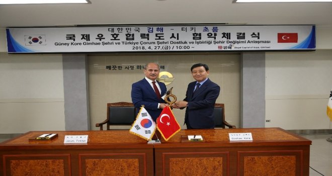 Kore Savaşında başlayan ilişkilerin 1957 yılında diplomatik ilişkilere dönüştüğünü ve iki devlet arasında 60 yıldan beri devam eden bir diplomatik ilişkinin olduğunu belirten Çorum Belediye Başkan Yardımcısı Ahmet Yabacıoğlu, “5393 Sayılı Belediye Kanunun 74. maddesine istinaden, Belediye Meclisinin 07.08.2017 tarih ve 136 sayılı kararı ile Kardeş Şehir ilan edilmesi akabinde Güney Kore Cumhuriyeti Gimhae Belediyesi ve Çorum Belediyesi karşılıklı çalışma ziyaretlerimiz devam ediyor” dedi.