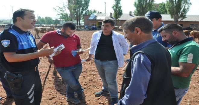 Öte yandan, hayvan pazarına gelen İl Emniyet Müdürlüğü Toplum Destekli Polislik Şube Müdürlüğü ekipleri, dağıttıkları el broşürleriyle vatandaşları dolandırıcılara karşı uyardı. Hayvan pazarındaki yoğunluğu fırsat bilen dolandırıcılara karşı vatandaşların dikkatli olmalarını isteyen polis, vatandaşlardan şüpheli durumlarda hemen 155i aramalarını istedi.