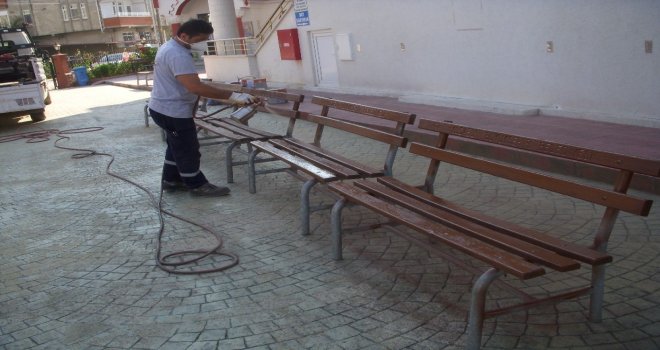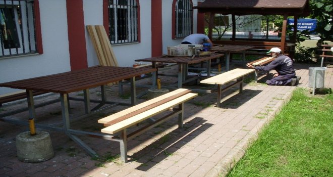 Kartepe Belediyesi Park ve Bahçeler Müdürlüğü ekipleri, Kartepe Merkez Park Camiinin avlusunda bulunan oturma gruplarını tamir etti.