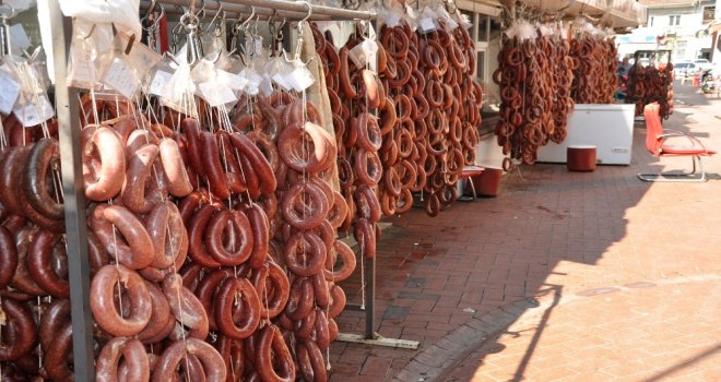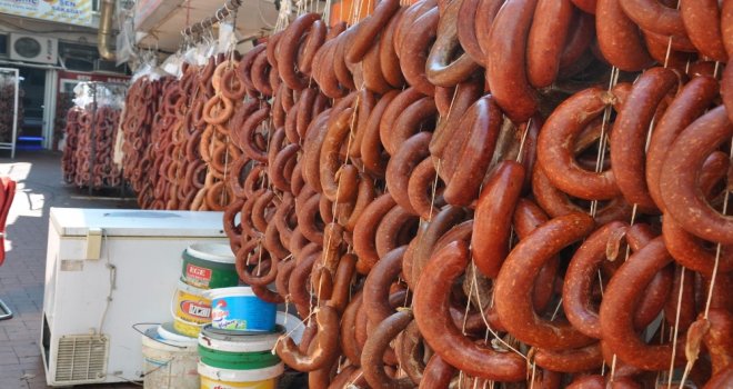 Simavda kasapları yanı sıra marketlerde de kıyma ve sucuk dolumu yapıldığı gözlendi.