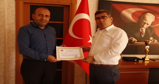 Muşun Varto Kaymakamı ve Belediye Başkanı Vekili Mehmet Nuri Çetin, Ankaraya tayini çıkan ilçe vaizi Nihat Has Çelike başarı belgesi verdi.