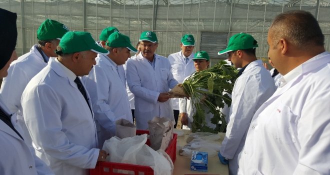 Kayseri Şekere ait ar-ge serasında ve açık alanda yürütülmekte olan ikinci yıl şeker pancarı tohumu ıslah çalışmaları ile çerezlik kabak çekirdeği tohum ıslahı çalışmalarını, Kayseri Pancar Koopeartifi Yönetim Kurulu Başkanı Hüseyin Akay, Kayseri Şeker Fabrikası Yönetim Kurulu Başkanı Turhan Özer, Kayseri Şeker Fabrikası Genel Müdürü Osman Canıtez, Genel Müdür yardımcıları, Şeker İş Sendikası Kayseri Şube Başkanı İbrahim Dayı ve diğer yetkililer Kayseri Şeker Ar-Ge Merkezi arazisinde birlikte inceledi.